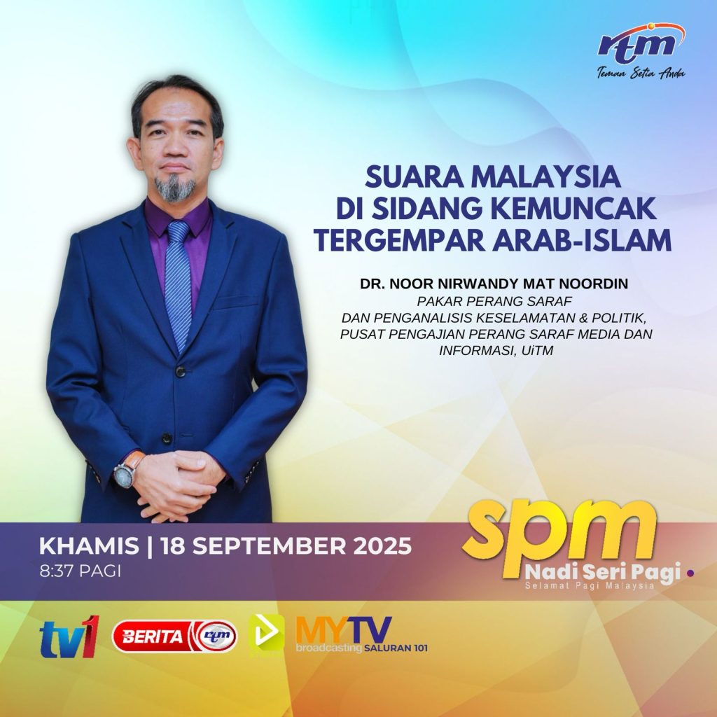 KUALA LUMPUR, 18 September – Penglibatan di Sidang Kemuncak Tergempar Arab-Islam di Doha, Qatar membuktikan Malaysia komited membawa pendekatan diplomasi multilateralisme yang lebih tegas dalam usaha mendesak tindakan global terhadap kekejaman berterusan rejim Zionis Israel ke atas rakyat Palestin. Pakar Perang Saraf dan Penganalisis Keselamatan dan Politik Universiti Teknologi MARA (UiTM), Dr Noor Nirwandy Mat […]