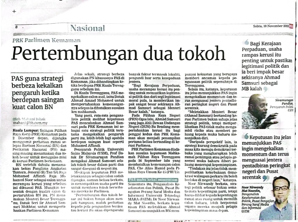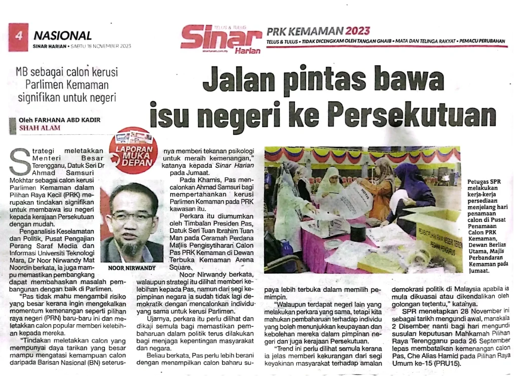 KUALA LUMPUR: Isu tempatan dijangka kurang dibangkitkan pada kempen Pilihan Raya Kecil (PRK) Kemaman berikutan masyarakat kini tertumpu kepada isu konflik di Palestin. Malah, penganalisis politik berpandangan ketika ini masyarakat tidak cenderung kepada politik tempatan kesan konflik di Gaza yang mendapat tumpuan masyarakat dunia. Penganalisis politik dari Universiti Teknologi Mara (UiTM), Dr Noor Nirwandy Mat […]