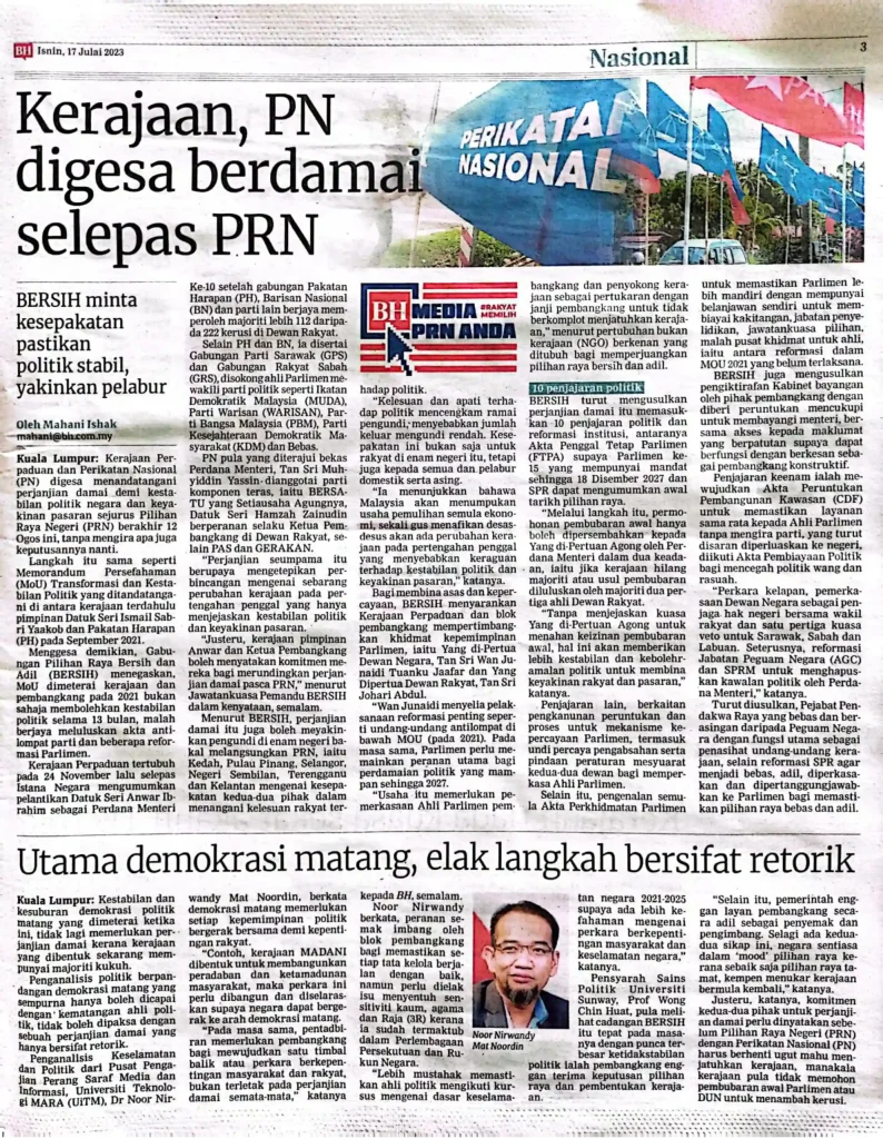 Kerajaan, PN Digesa Berdamai Selepas PRN