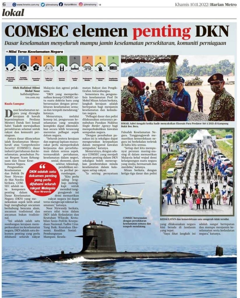 Kuala Lumpur: Dasar keselamatan negara yang dirangka kerajaan di bawah kepemimpinan Perdana Menteri Datuk Seri Ismail Sabri Yaakob mewujudkan persekitaran selamat untuk rakyat dan komuniti perniagaan. Antara dasar dilancarkan ialah Keselamatan Menyeluruh’ atau ‘Comprehensive Security’ (COMSEC); dasar industri pertahanan dan keselamatan; penubuhan Pusat Respon Scam Kebangsaan dan Dasar Keselamatan Negara. Penganalisis Keselamatan dan Politik Dr […]