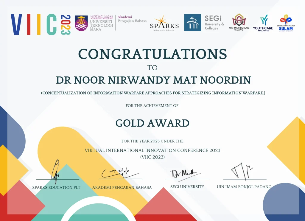 Information Warfare Gold Award Innovation. (Innovasi Gerak Saraf Perang Saraf – GSPS)