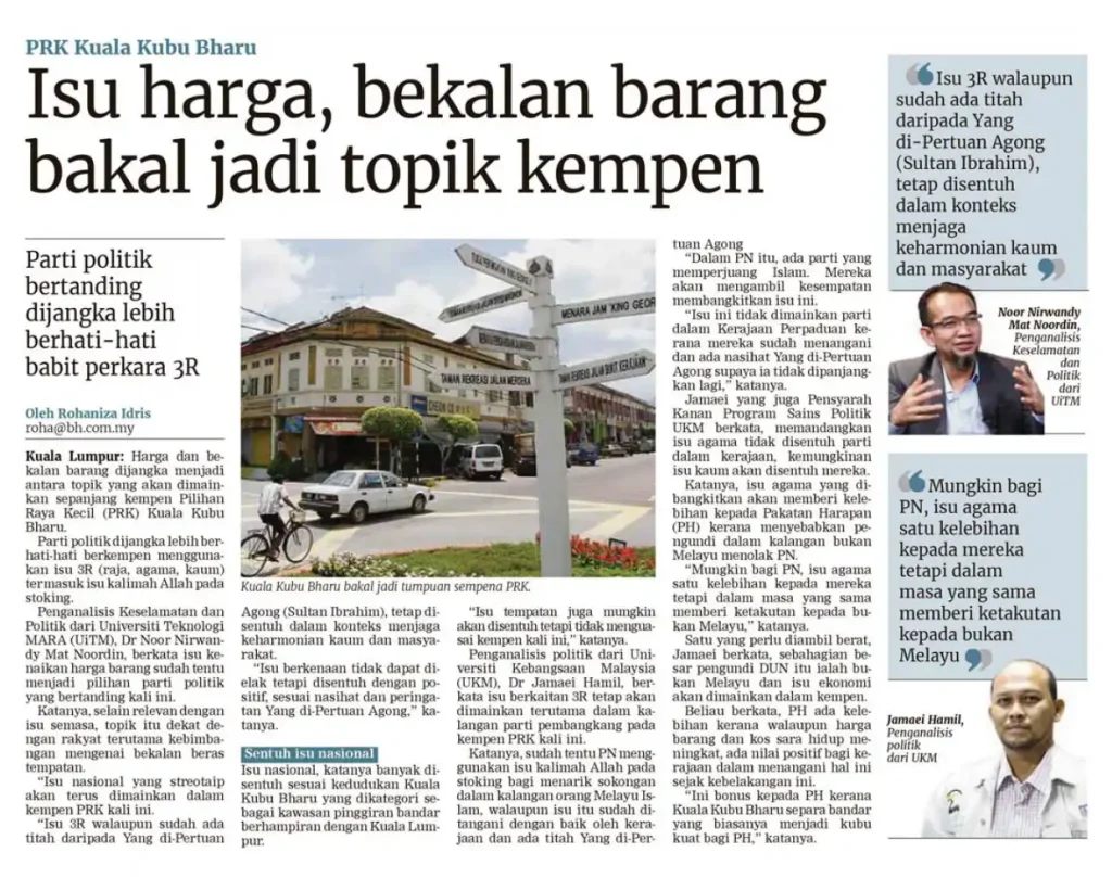 SHAH ALAM – Keputusan Pilihan Raya Kecil (PRK) Sungai Bakap memberi gambaran bahawa kekuatan sokongan pengundi Melayu bagi kawasan berkenaan masih lagi dikuasai parti pembangkang. Bagaimanapun Felo Operasi Psikologi Pusat Pengajian Perang Saraf Media & Informasi dari Universiti Institut Teknologi Mara (UiTM), Dr Noor Nirwandy Mat Noordin berpandangan, sukar untuk mengatakan gelombang hijau masih kuat […]