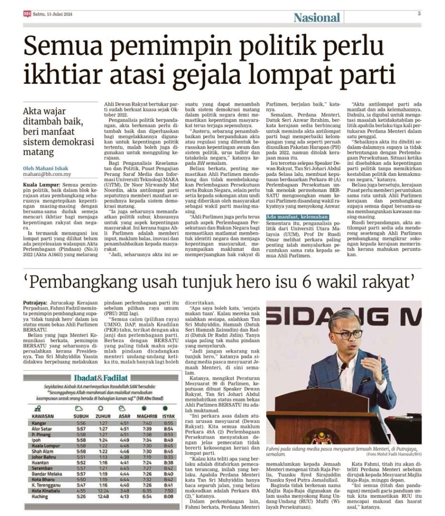 Semua Pemimpin Politik Perlu Ikhtiar Atasi Gejala Lompat Parti
