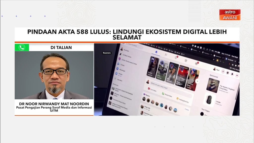Diskusi titah Sultan Selangor. Bagaimana mengekang pertelagahan dalam kalangan pemimpin & penyebaran fitnah di media sosial. Dr Noor Nirwandy Mat Noordin, Pensyarah Kanan Pusat Pengajian Perang Saraf Media dan Informasi UiTM. kredit: https://www.astroawani.com/videos/video-terkini-x7sio1/pantau-agenda-reformasi-mengekang-pertelagahan-penyebaran-fitnah-media-sosial-x9bmo1e